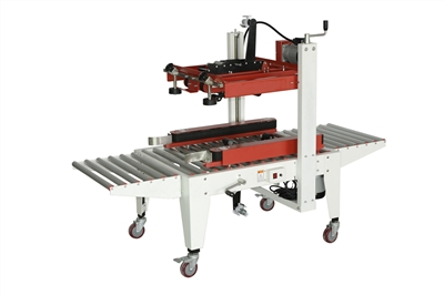 • 本系列是以單機機型,上下“一”字型自動封箱包裝作業(yè)。 傳動設(shè)計方式,采兩側(cè)傳動送箱貼帶封箱包裝作業(yè)。 適用紙箱規(guī)格內(nèi),手動調(diào)整(1~2分鍾內(nèi))可完成。 包裝物件,凡是紙箱皆可采用本系列。 經(jīng)濟、省力、美觀、輕巧機型。 機件性能精密又耐用,運轉(zhuǎn)穩(wěn)固壽命長。 保證較人工貼帶美觀、速度快、效率高。 型號 ZT-500Y標準單機型(單位:MM) 使用電源 220V、1∮、50/60HZ(其它可指定配置) 適用紙箱 150~∞Lx110~500Wx100~500H(2"適用,3"另協(xié)定) 適用膠帶 48mmW~60~75mmWx1000碼L(可指定配置) 臺面高度 最小570MM、最大750MMH(其它高度可指定配制),附剎車輪 機械重量 淨重90Kg
