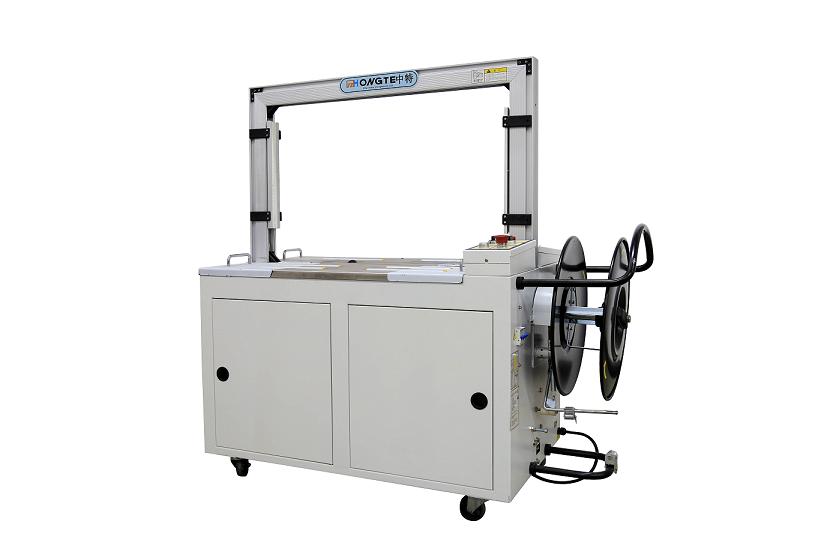 • ZT-508D全自動捆扎機 1.電 源:380V 50/60Hz 1.0kW 2.整機尺寸:L1400mm×W628mm×H1418mm 3.捆扎規(guī)格:最小包裝尺寸:寬80mm×高60mm 標準框架尺寸:寬800mm×高600mm (可根據需要定制) 4.工作臺面高度:750mm  (可根據需要定制) 5.承重能力:80 kg 6.捆扎速度:≤2.5秒/道 7.捆緊力:0-60kg(可調) 8.捆扎帶規(guī)格:寬9-15(±1)mm,厚 0.55-1.0(±0.1)mm。 9.帶盤規(guī)格:寬160-180mm,內徑200-210mm,外徑400-500mm。 10.捆扎形式:平行捆扎,方式有點動、連打、球開關、腳踏開關等。 11.粘合方式:熱熔法,底部粘接,粘接面≥90%,粘接位置偏差≤2mm。 12.機器重量:220kg 13.可選項:①尺寸加大,②加壓 14.電氣配置: ?接觸器:施耐德 ?PC控制器:自制 ?按鈕:西門子APT ?繼電器:施耐德 ?接近開關(單選):□P+F,□FOTEK ?電機:MEIWA 15.噪 聲:工作環(huán)境下,噪聲≤80dB(A) 16.環(huán)境條件:濕度≤90%,溫度0-40℃